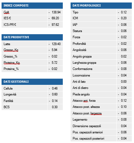 Ogni Paese presenta gli indici genetici confrontandoli con la media della popolazione locale. Tut- tavia, la posizione di un animale all’interno della razza tende a cambiare nel tempo, poiché il miglioramento genetico porta alla riduzione progressiva degli indici relativi. Questo fenomeno è visibile nel TPI (Total Performance Index) degli Stati Uniti: ad esempio, il toro O-Man, che 20 anni fa aveva un indice latte di +1090 libbre, nel 2025 risulterà a circa -1090 libbre. Tuttavia, il suo TPI complessivo rimane stabile grazie all’inserimento di fattori di aggiustamento che compensano il cambiamento della base.